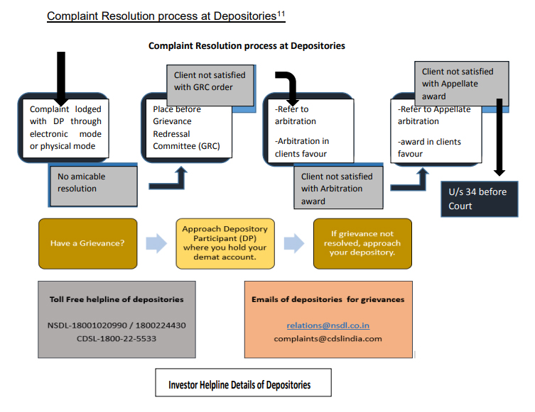 - In case of any grievances, Investor has right to approach Participant or Depository or SEBI for getting the same resolved within prescribed timelines.